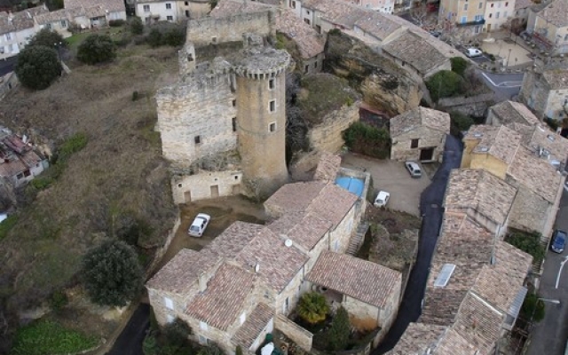 Dans ce cadre naturel et bucolique, jaillit soudain au creux de la végétation la dernière tour encore visible du château. En empruntant son escalier en fer forgé, s’étend soudain à nos pieds une vue magistrale sur le mont Ventoux et les terres environnantes abritant le diamant noir, cher aux habitants !